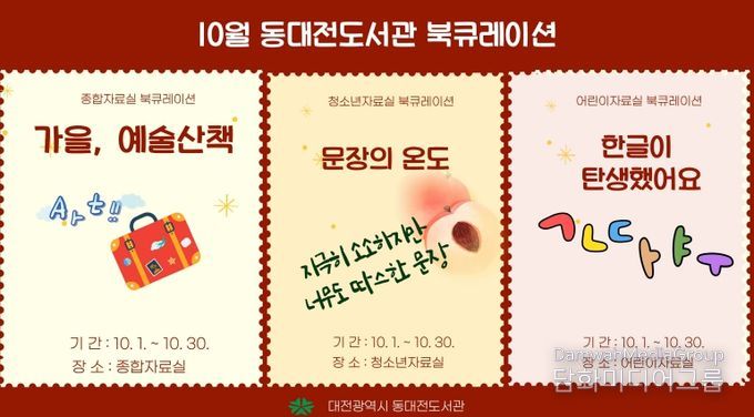 시민행정신문 강갑수 기자 | 동대전도서관은 가을 독서의 계절을 맞아 10월 한 달간 연령별 맞춤 주제 북큐레이션 전시를 운영한다고 10일 밝혔다.