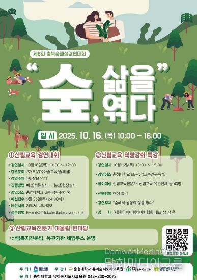 시민행정신문 강갑수 기자 | 충북도는 산림교육 전문가의 역량 강화를 도모하고, 도민과 숲의 소중한 가치를 함께 나누기 위해 오는 10월 16일 ‘제6회 충북 숲해설 경연대회’를 충청대학교 캠퍼스 일원에서 개최한다고 10일 밝혔다.