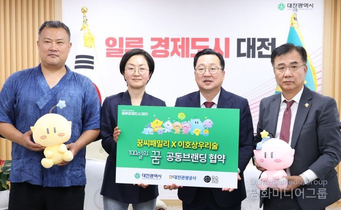 시민행정신문 이세훈 기자 | 대전시는 10일 시청 응접실에서 대전관광공사, 우리술협동조합과 함께 공동브랜딩 업무협약을 맺고, 대전 대표 캐릭터 꿈돌이를 적용한 프리미엄 전통주 ‘100일의 꿈’을 출시한다고 밝혔다.
