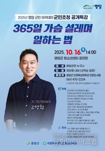 시민행정신문 강갑수 기자 | 영암군이 10월16일 오후 2시 청소년센터에 개그맨이자 방송인인 고명환 씨를 초청해 군민아카데미 제5회 공개특강을 개최한다.