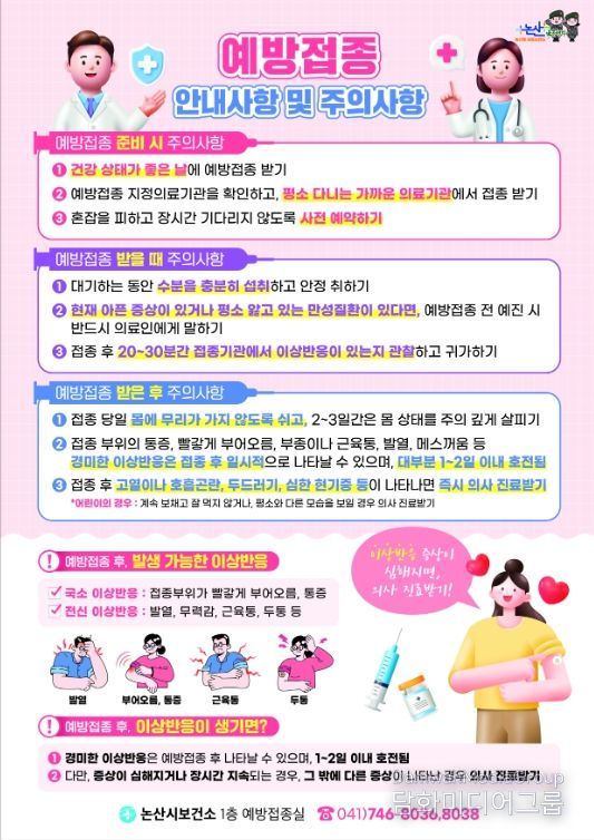논산시 관계자는 “예방접종은 감염병에서 자유로운 노후를 위한 최선의 수단”이라며 “대상에 해당하시는 분들은 가까운 접종기관을 통해 빠짐없이 무료 접종 혜택을 받으시기 바란다”고 당부했다.