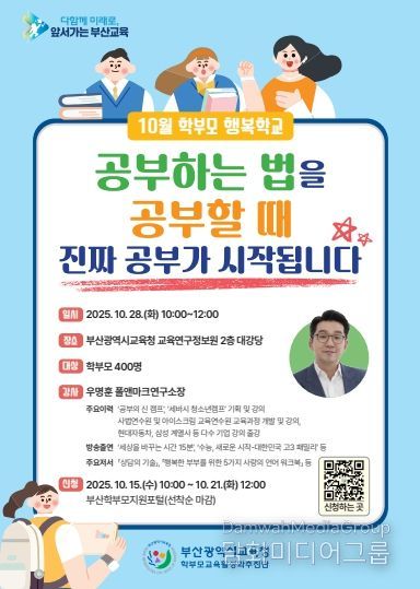 시민행정신문 기자 | 부산광역시교육청은 학부모의 올바른 자녀 교육관 정립 및 부산교육 정책 이해를 돕기 위해 ‘10월 학부모 행복학교’를 운영한다고 밝혔다.