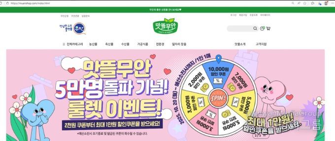 10월 20일부터 시작되는 룰렛 이벤트는 ‘맛뜰무안몰’ 회원 누구나 참여할 수 있으며, 룰렛을 돌려 최대 1만원의 할인쿠폰을 무작위로 제공한다.