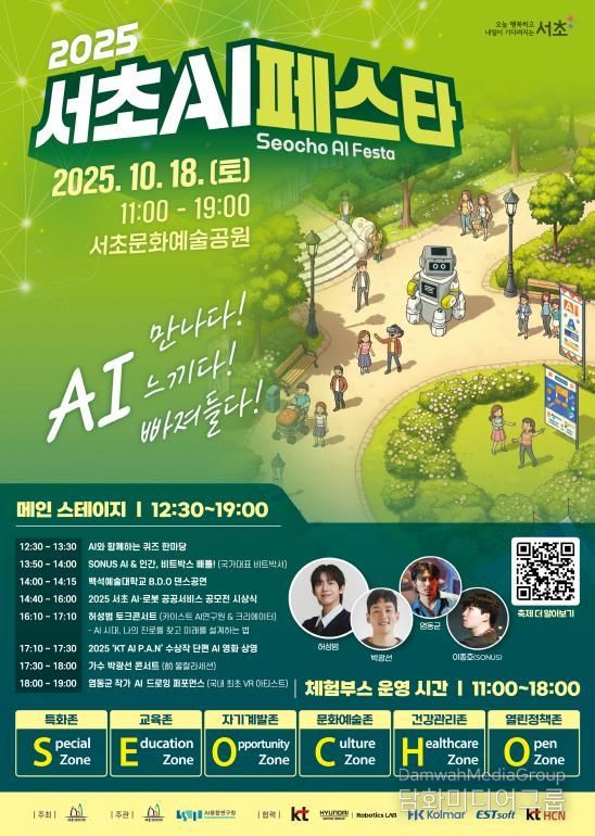서초구가 주최하고 숭실대 AI융합연구원이 공동 주관하는 이번 행사는 주민들이 AI 시대의 변화와 가능성을 체험하고, 배움과 재미를 모두 얻을 수 있는 참여형 축제로 마련됐다. KT, 현대자동차 로보틱스랩, 한국콜마, 이스트소프트 등 다양한 기업이 함께한다. 특히, 전국 최초 AI 특구인 서초가 쌓아온 혁신도시로서의 성과를 지역사회와 공유하고, 미래 발전을 함께 모색한다는 취지를 담았다.