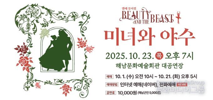 시민행정신문 강갑수 기자 | 해남군은 오는 10월 23일 오후 7시 해남문화예술회관 대공연장에서 발레뮤지컬 ‘미녀와 야수’공연을 선보인다.