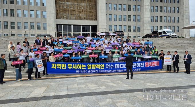 여수시의회 백인숙 의장 등 여수MBC 순천이전 반대 범시민대책위원회와 여수시민 200여 명은 14일 국회와 MBC문화방송을 항의 방문해 규탄 대회를 가졌다.