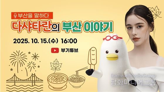 시민행정신문 강갑수 기자 | 부산시는 오늘(15일) 오후 4시 시 소통캐릭터 '부기'의 유튜브채널(부기튜브)을 통해 '홍보대사 다샤 타란의 부산을 말하다' 라이브 방송을 개최한다고 밝혔다.