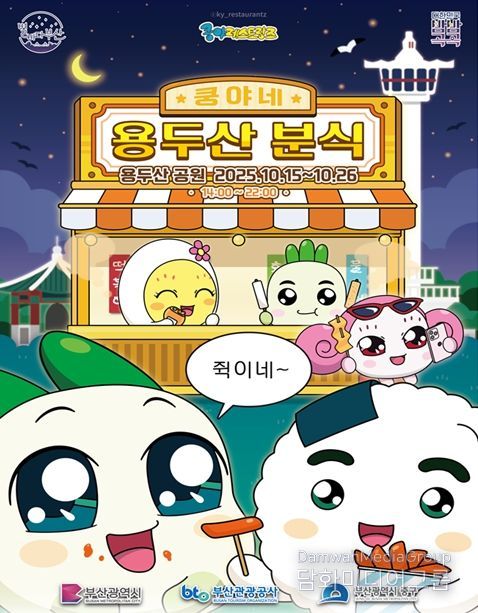 시민행정신문 강갑수 기자 | 부산시는 부산관광공사와 오늘(15일)부터 10월 26일까지 용두산공원에서 '별바다부산 나이트 팝업 시즌3'으로 '쿵야네 용두산 분식 팝업'을 운영한다고 밝혔다.