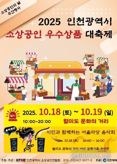 시민행정신문 이세훈 기자 | 인천광역시는 지역 경제의 든든한 버팀목인 ‘소상공인의 날(11월 5일)’을 기념해 오는 10월 18일부터 19일까지 이틀간 오전 10시부터 오후 8시까지 월미 문화의거리에서 ‘2025 인천 소상공인 우수제품 전시회’를 개최한다.