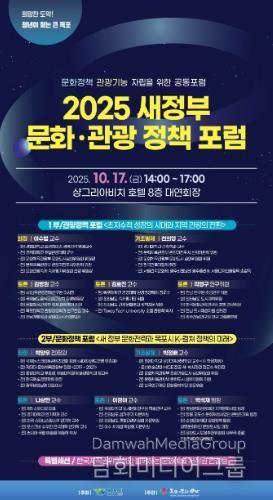 시민행정신문 강갑수 기자 | 목포시와 (재)목포문화재단은 오는 10월 17일 오후 2시, 샹그리아비치호텔 8층 대연회장에서 ‘새정부 문화·관광 정책 포럼’을 개최한다.