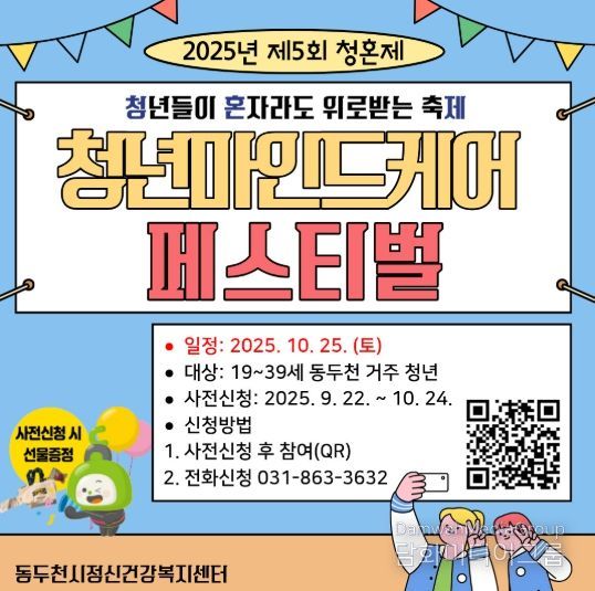 시민행정신문 기자 | 동두천시정신건강복지센터는 오는 25일 보건소 및 별관 내 센터에서‘제5회 청년마인드케어 페스티벌’을 개최한다고 밝혔다.
