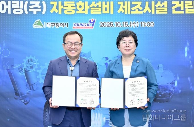 시민행정신문 이세훈 기자 | 대구광역시는 10월 15일 대구시청 산격청사에서 영일엔지니어링㈜(대표 이창은)과 금호워터폴리스 내 ‘전기차 부품 자동화설비 제조시설’ 건립을 위한 투자협약을 체결했다.