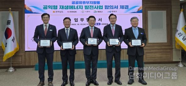 나주시(시장 윤병태)는 15일 전남도청에서 전라남도, 영암군, 영광군, 한전KDN(주)과 함께 ‘공익형 재생에너지 발전사업’ 업무협약을 체결했다고 밝혔다.