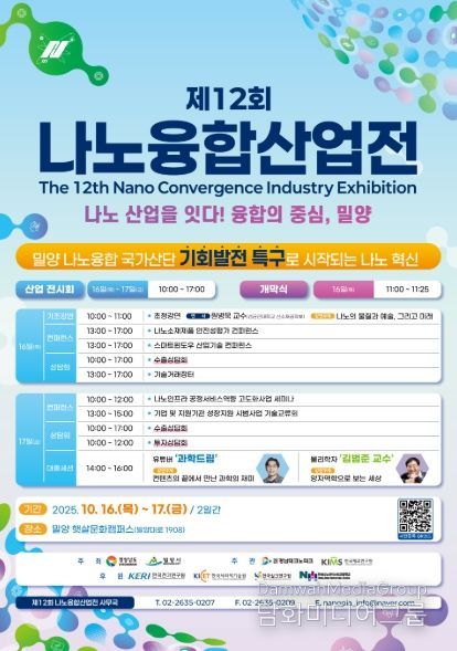 시민행정신문 이세훈 기자 | 경상남도는 오는 16일부터 17일까지 이틀간 밀양햇살문화캠퍼스에서 ‘나노산업을 잇다! 융합의 중심, 밀양’을 주제로 제12회 나노융합산업전(나노피아 2025)을 개최한다고 밝혔다.