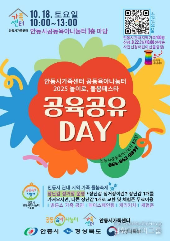 시민행정신문 기자 | 안동시는 오는 10월 18일 오전 10시부터 오후 4시까지 '2025 놀이로 돌봄페스타 “공육공유 DAY”'를 개최한다.