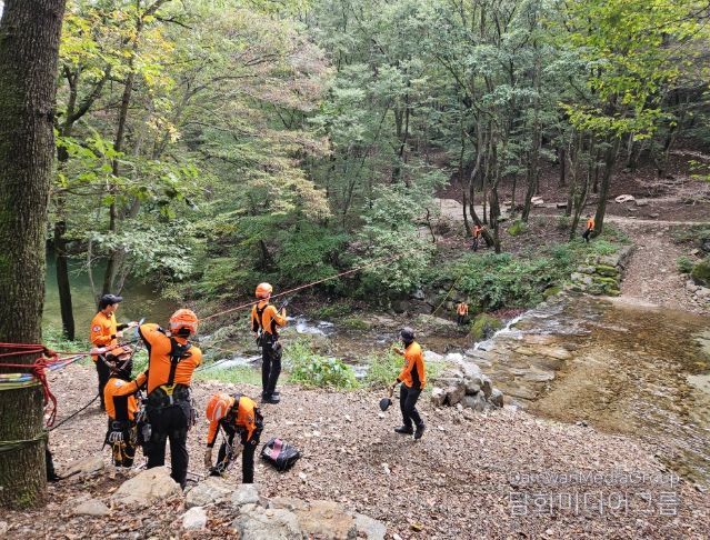 시민행정신문 강갑수 기자 | 김천소방서는 10월 17일 황악산 일원에서 산악사고 발생 시 현장 대응 능력 향상을 위한‘산악사고 인명구조 특별훈련’을 실시했다.