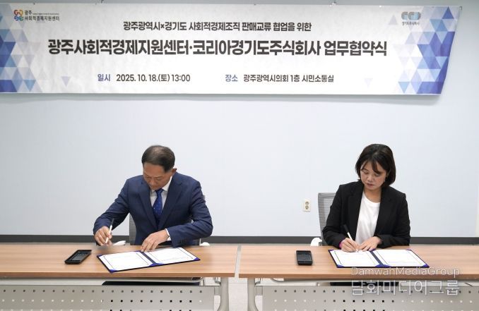 시민행정신문 이세훈 기자 | 경기도주식회사와 광주광역시 사회적경제지원센터가 지난 18일 광주광역시 시의회에서 ‘경기도-광주광역시 사회적경제조직 판매교류 협업을 위한 업무협약’을 체결하고 사회적경제조직 활성화를 위해 공동 노력하기로 했다.