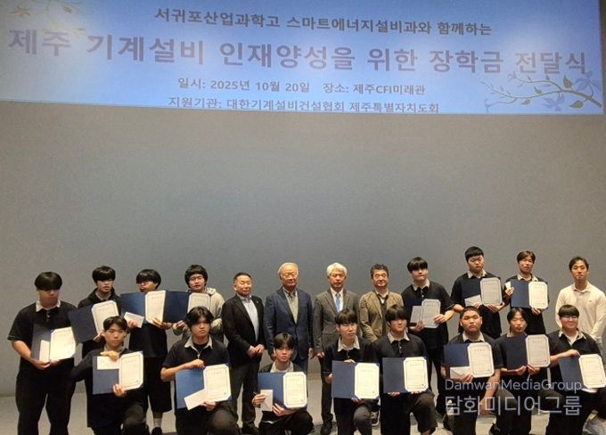 시민행정신문 기자 | 제주도교육청 서귀포산업과학고등학교는 20일 제주에너지공사에서 대한기계설비건설협회 제주특별자치도회로부터 스마트에너지설비과 학생들을 위한 장학금을 860만원을 전달받았다.