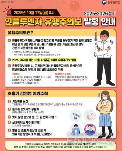 이번 인플루엔자 유행 주의보는 지난 6월 13일 2024~2025절기 주의보 해제 이후 약 4개월 만에 재발령된 것으로, 지난해보다 약 2개월 이른 시점에 발령됐다.