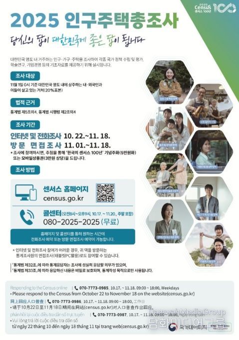 시민행정신문 강갑수 기자 | 서귀포시는 10월 22일부터 11월 18일까지 ‘2025 인구주택총조사’가 실시된다고 밝혔다.