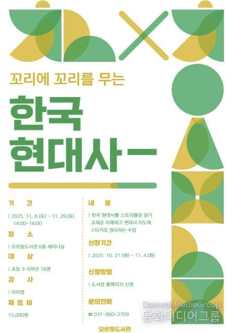 시민행정신문 강갑수 기자 | 동두천시 도서문화사업소 오르빛도서관은 초등학생을 대상으로 한국 현대사를 쉽고 흥미롭게 배울 수 있는 ‘꼬리에 꼬리를 무는 한국 현대사’ 프로그램을 운영한다고 21일 밝혔다.