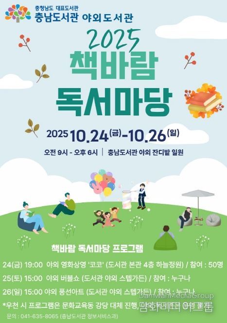 시민행정신문 강갑수 기자 | 충남도서관은 오는 24∼26일 충남도서관 일원에서 ‘2025 책바람 독서마당’ 야외도서관 행사 및 문화 프로그램을 진행한다고 23일 밝혔다.