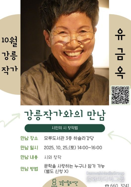 이번 10월 행사는 ‘시 창작법’을 주제로, 참가자들이 유금옥 시인과 함께 소통하며 시가 태어나는 과정을 가까이에서 듣는 시간이 될 예정이다.