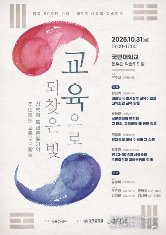 시민행정신문 이존영 기자 | 서울 성북구는 오는 10월 31일, 성북문화원과 국민대학교 한국사연구소가 공동 주관하는 광복 80주년 기념 제9회 성북학 학술회의 ‘교육으로 되찾은 빛’을 개최한다고 밝혔다.
