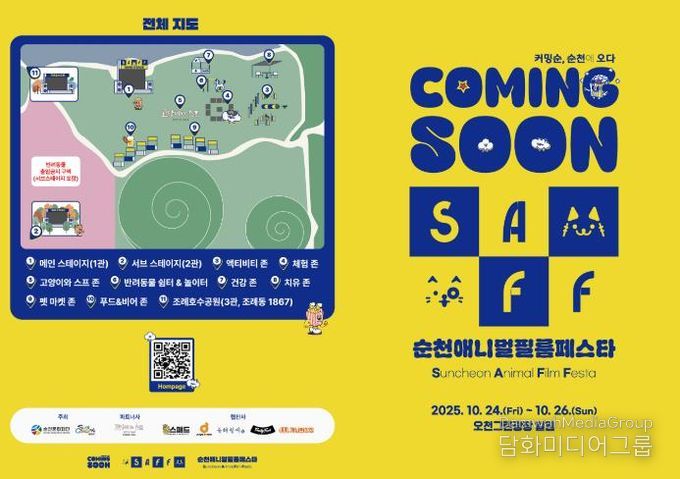 시민행정신문 강갑수 기자 | 순천시와 순천문화재단에서 오는 24일부터 26일까지 3일간, 반려동물과 함께 즐길 수 있는 특별한 야외 영화축제 ‘2025 순천애니멀필름페스타(SAFF)’를 공동으로 개최한다.