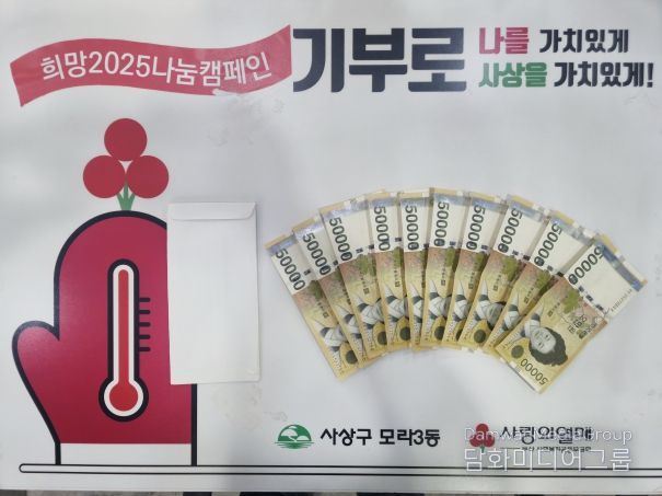 시민행정신문 강갑수 기자 | 부산 사상구 모라3동(동장 이계임)는 지난 22일 국가유공자인 모라3동의 한 주민으로부터 이웃돕기 성금 50만 원을 전달받았다고 밝혔다.