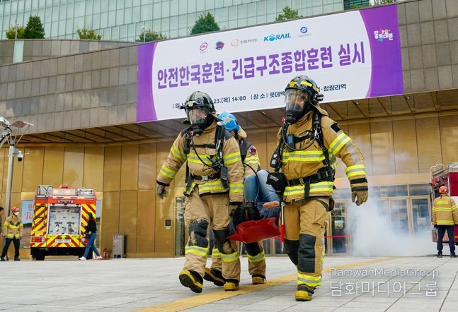 현장에서는 동대문소방서, 한화커넥트, 코레일, 군부대 등 11개 유관기관과 민간단체 600여 명이 참여해 징후 감지, 초기 대응, 비상 대응, 수습 복구, 강평 및 격려 순으로 약 1시간 30분간 훈련을 펼쳤다.