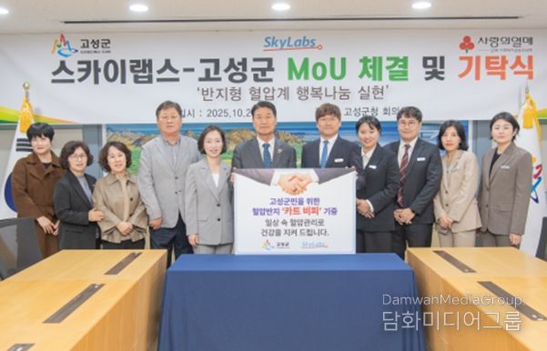 시민행정신문 강갑수 기자 | 평화 경제 거점 도시 강원 고성군은 2025년 10월 21일, 주식회사 스카이랩스와 함께 만성질환(고혈압, 심혈관 질환 등) 의료취약계층 지원을 위한 업무협약을 체결했다.