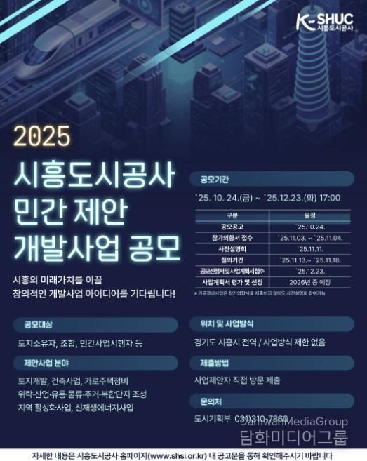시민행정신문 강갑수 기자 | 시흥도시공사는 민간의 창의적인 개발 아이디어와 공사의 개발사업 역량을 결합하여, 신규 개발사업을 발굴하기 위한 ‘민간 제안 개발사업 공모’를 추진한다고 24일 밝혔다.