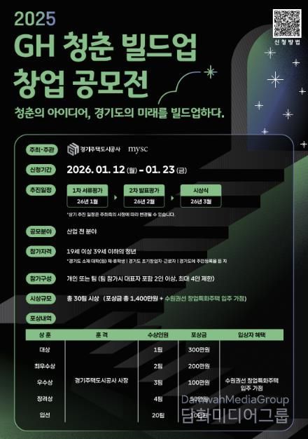참가 신청은 2026년 1월 12일부터 23일까지 받으며, 시상식은 3월 중 진행할 예정이다. 보다 자세한 일정과 접수 방법은 GH 홈페이지 공지사항에서 확인할 수 있다.