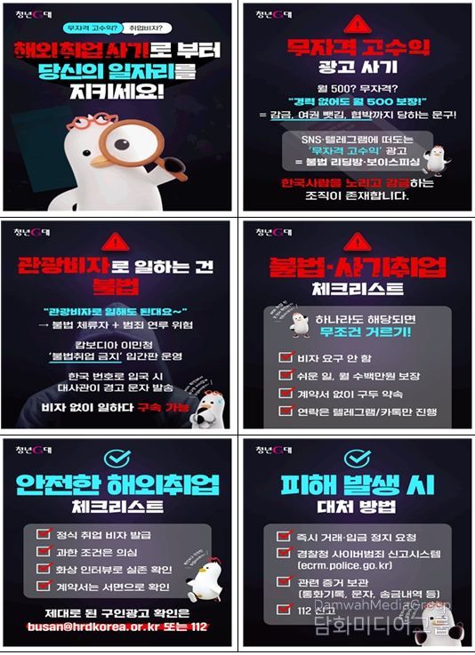 또한 교육 참가자들이 스스로 위험 신호를 인지하고, 안전하게 해외취업을 준비할 수 있도록 상황별 대응법과 피해 예방법도 함께 제공된다.