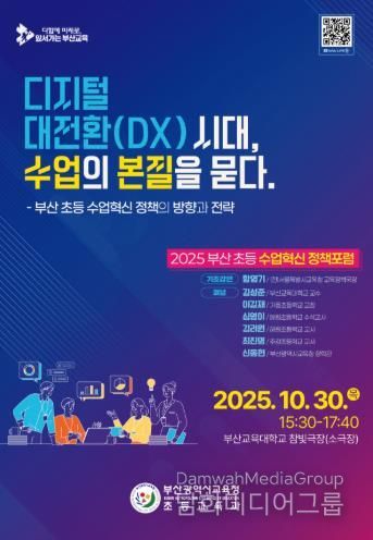 시민행정신문 기자 | 부산광역시교육청은 오는 30일 오후 부산교육대학교 참빛극장에서 초등 교원과 교육전문직원 등 200여 명을 대상으로 ‘디지털 대전환(DX)* 시대, 수업의 본질을 묻다’를 슬로건으로 ‘2025 부산 초등 수업혁신 정책포럼’을 개최한다고 밝혔다.