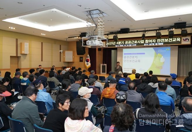 시민행정신문 강갑수 기자 | 부산광역시 남구는 지난 10월 24일, 남구청 1층 대강당에서'2025년 제4단계 공공근로사업' 및 지역공동체 일자리사업 참여자 80여 명을 대상으로 안전 보건교육을 실시했다고 밝혔다.