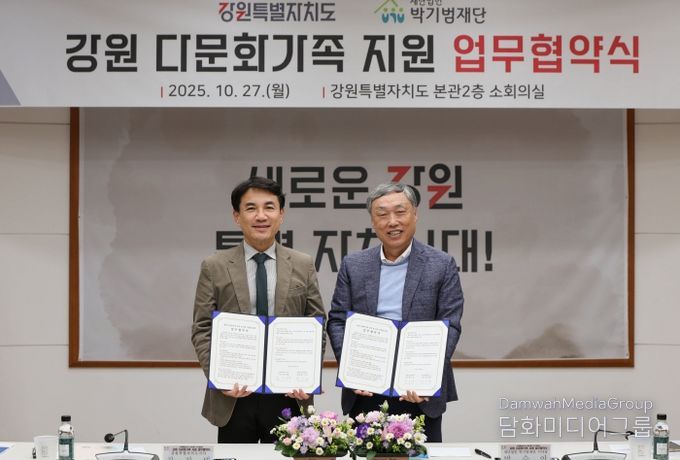 시민행정신문 강갑수 기자 | 강원특별자치도는 10월 27일 오후 3시 30분, 도청 본관2층 소회의실에서 재단법인 박기범재단과 강원 다문화가족 지원을 위한 업무협약을 체결했다.