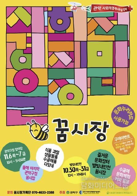 이어지는 11월 6일과 7일에는 10시부터 17시 30분까지 관악구청 앞마당에서 올해의 마지막 ‘꿈시장’이 운영된다.