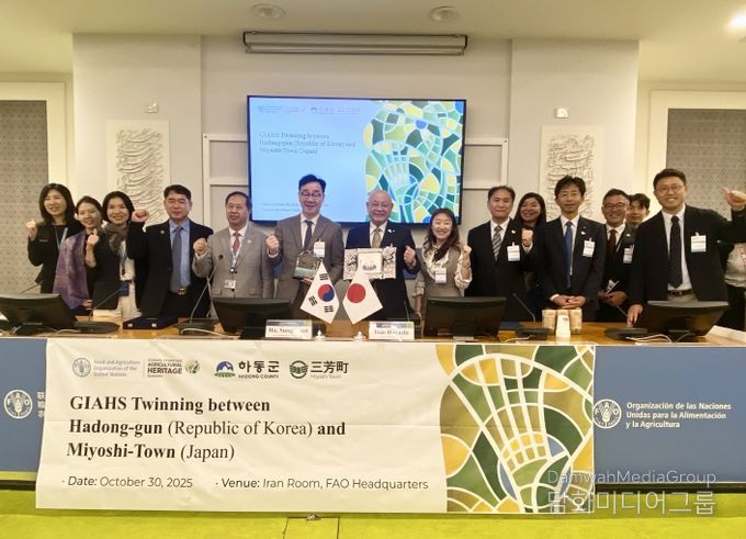 하동군은 이번 FAO 방문 기간 중인 10월 30일, 같은 해 GIAHS에 등재된 일본 미요시정(정장 하야시 이사오)과 우호도시 협약을 체결했다.