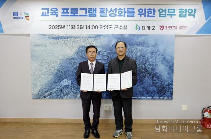 군은 지난 3일 충북대학교 인문대학과 단양 유네스코 세계지질공원 교육 프로그램 활성화를 위한 업무협약을 체결했다고 밝혔다.