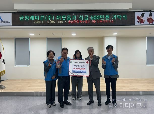 이선영 금남면장은 “매년 변함없이 이웃사랑을 실천하는 금창레미콘에 감사하다”며 “기탁된 성금은 꼭 도움이 필요한 곳에 사용하겠다”고 전했다.
