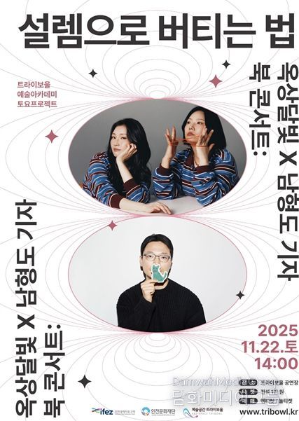 시민행정신문 강갑수 기자 | (재)인천문화재단이 운영하는 트라이보울에서 오는 11월 22일 오후 2시, '트라이보울 토요프로젝트 ‘옥상달빛×남형도 기자 북 콘서트: 설렘으로 버티는 법’' 이 열린다.