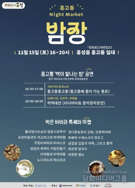 시민행정신문 기자 | 오는 15일 16시부터 20시까지 홍성읍 원도심 ‘홍고통’에서 제4회 골목이 살아나는 홍고통 Night Market 밤장이 열린다.