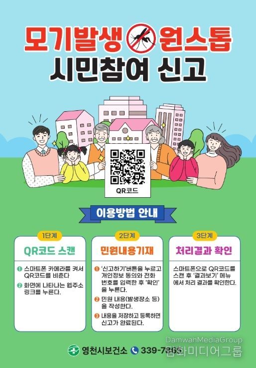 시민행정신문 기자 | 영천시보건소는 QR코드를 활용한 ‘모기발생 원스톱 시민참여 신고’ 시스템을 시범 운영한다고 10일 밝혔다.