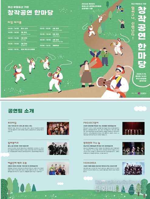 시민행정신문 강갑수 기자 | 부산시는 오는 15일 오후 2시 부산시민공원 흔적극장에서 부산 무형유산의 새로운 활용 방향을 모색하는'2025 제2회 무형유산 기반 창작공연 한마당'을 개최한다고 밝혔다