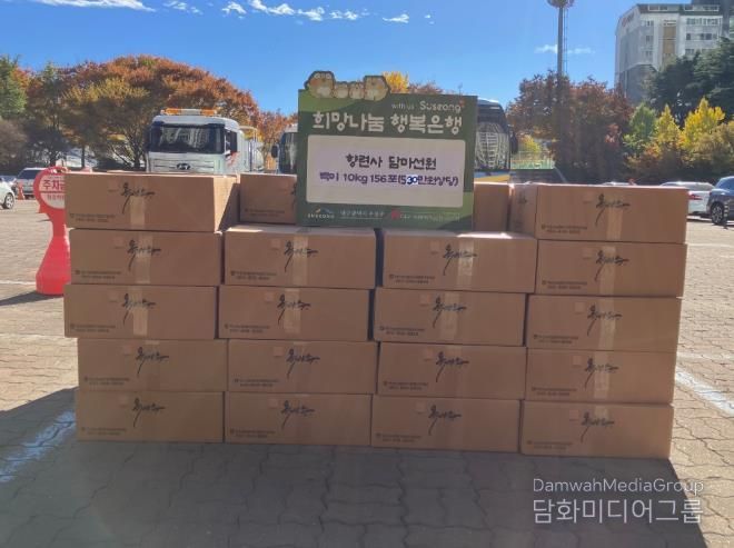 시민행정신문 강갑수 기자 | 향련사 담마선원은 지난 11일 관내 어려운 이웃들을 위해 백미 10kg 156포(530만 원 상당)를 수성구에 전달했다.