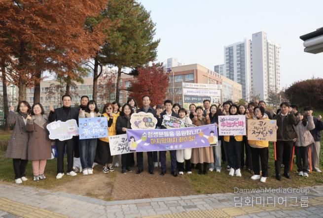 이날 조 군수는 지난 2023년 개교 이후 올해 처음 고3 학생들이 수능에 응시하는 동성고등학교를 방문해 수험생 한 명 한 명에게 “그동안 쏟은 노력만큼 좋은 결과가 있기를 바란다”고 응원의 말을 전했다.