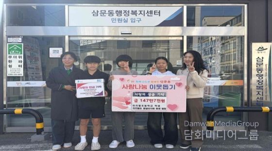 심정자 삼문동장은 “지역사회를 위한 학생ㄴ들의 나눔 실천에 감사드리며, 기탁금은 도움이 필요한 이웃에게 소중히 전달하겠다”라고 밝혔다.