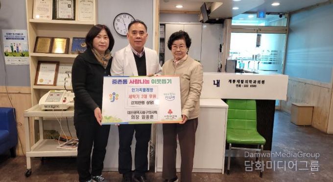 시민행정신문 강갑수 기자 | 대전 중구 중촌동은 대전중구의사회에서 지역 봉사활동 지원을 위해 중촌동 ‘한가족빨래방’에 세탁기 2대를 기탁했다고 17일 밝혔다.